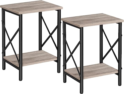 - Sturdy and Attractive: The solid X-shaped iron frame on both sides and the two-layer particle board perfectly constitute the entire end table, forming a simple but strong structure. The load-bearing capacity of each layer is 44lb, and the bottom has 4 adjustable feet to maintain balance