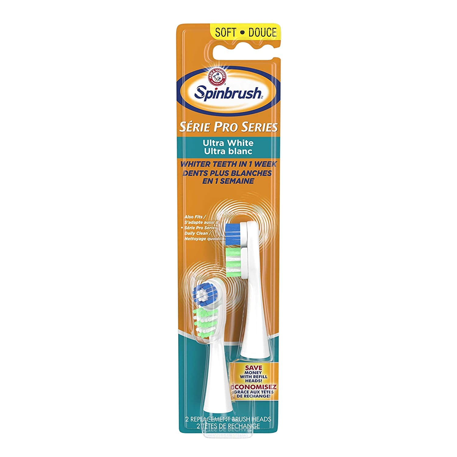 Arm & Hammer Spinbrush Pro Series White Electric Toothbrush Replacement Brush Heads Refills, Soft Bristles, 2 Count - 2 Pack (Includes 4 Brush Heads Total)