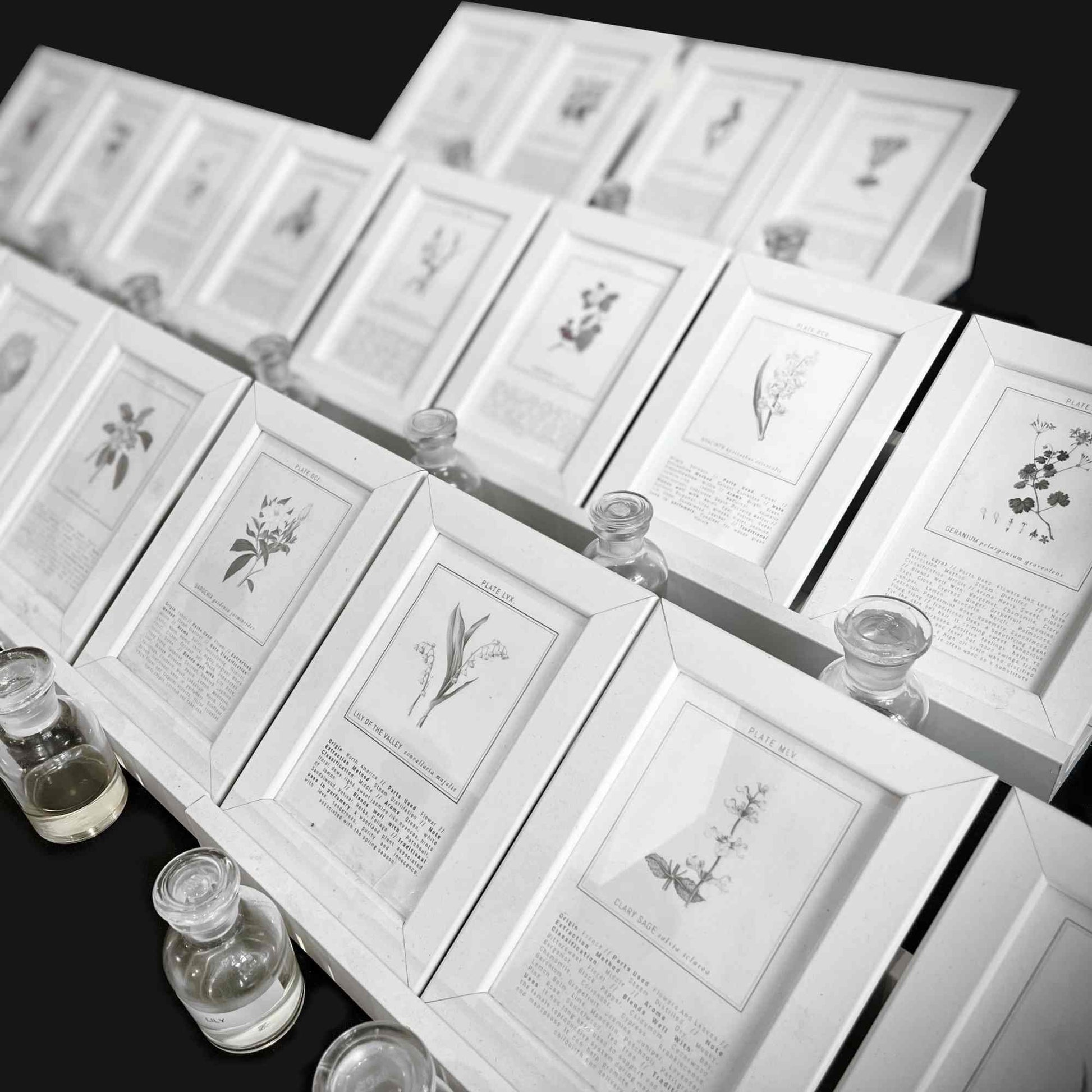 - (24)?scent testers in labelled apothecary jars for sampling
