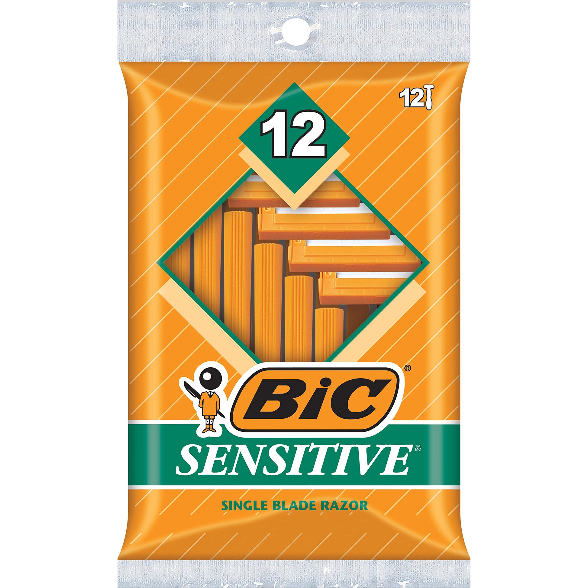 BIC Sensitive Men's Single Blade Disposable Razor, 12 count (Pack of 12)