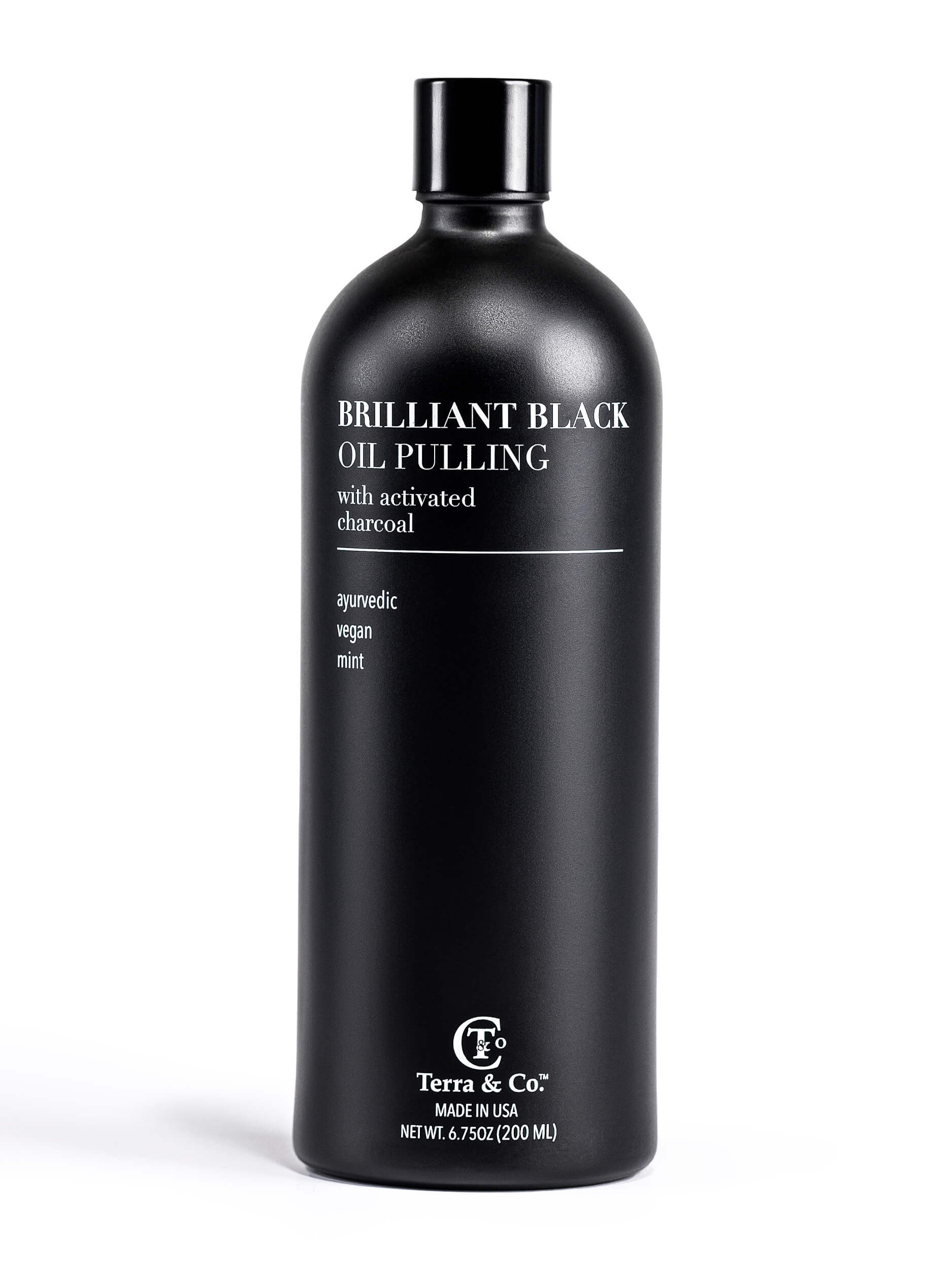 Inspired by these philosophies, Terra & Co. developed a powerful natural mouthwash blend of plant-based ingredients like MCT oil, coconut oil, peppermint, vitamin E, and a dash of activated charcoal to naturally whiten teeth and detoxify the entire mouth. Just a single sip of pure oil swished once a day can transform your oral and gut microbiomes and improve your overall well-being.