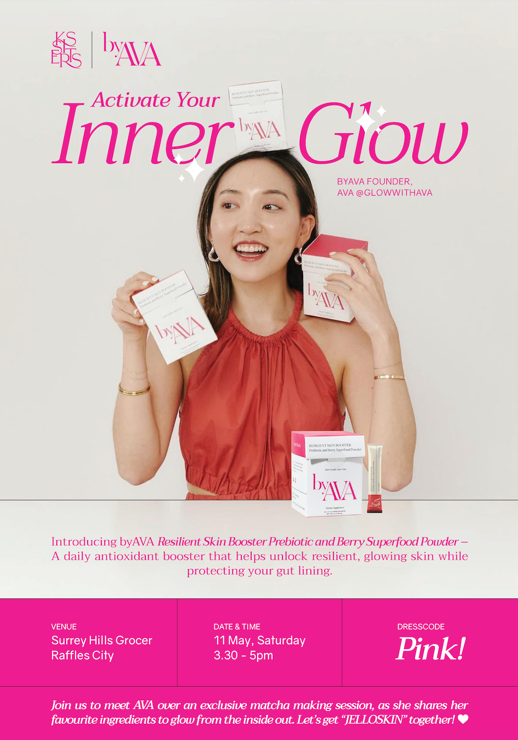 Join us in this group session where you'll discover various ways to enjoy her product and enjoy an exclusive matcha making experience with AVA. AVA will also reveal her favourite ingredients for inner glow. Let's get "JELLOSKIN庐" together!