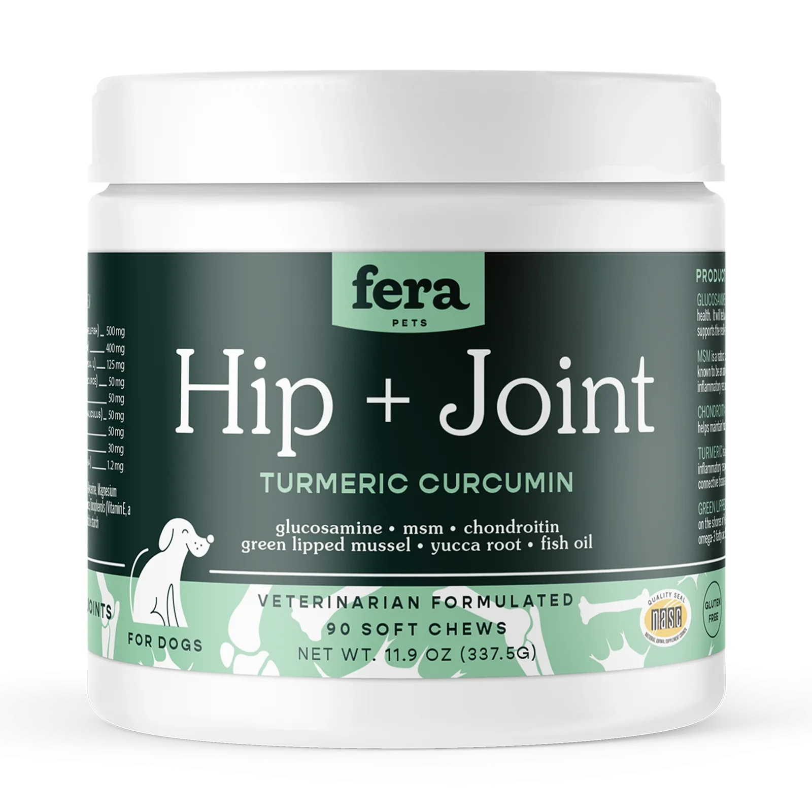 Let's face it, every joint support pet supplement contains the widely known glucosamine, msm & chondroitin. While the common trio is expected, Fera goes beyond the ordinary and incorporates Eastern and Holistic ingredients like Organic Turmeric, Green Lipped Mussel and Yucca Root.