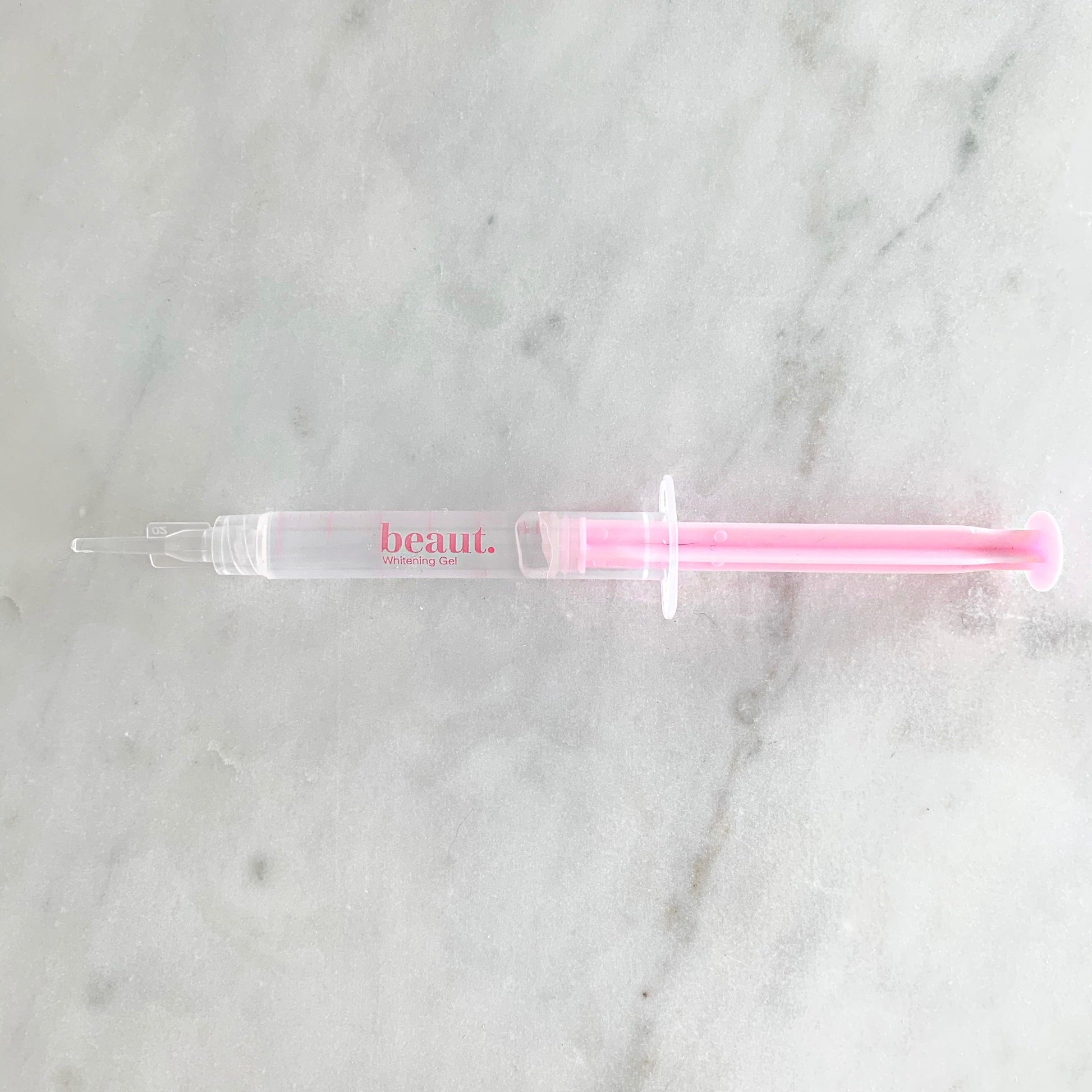 The Original Glam Smile Syringe Trio contains 3 pens. Each pen contains 3 mL of 44% Carbamide Peroxide Whitening Gel.