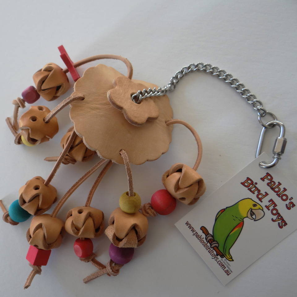 Pablo’s Mini Lantern is 8 vegetable tanned leather shaped into mini lantern are hanging from big flower. Mini lanterns can be separated in half when little beak get into the gap.