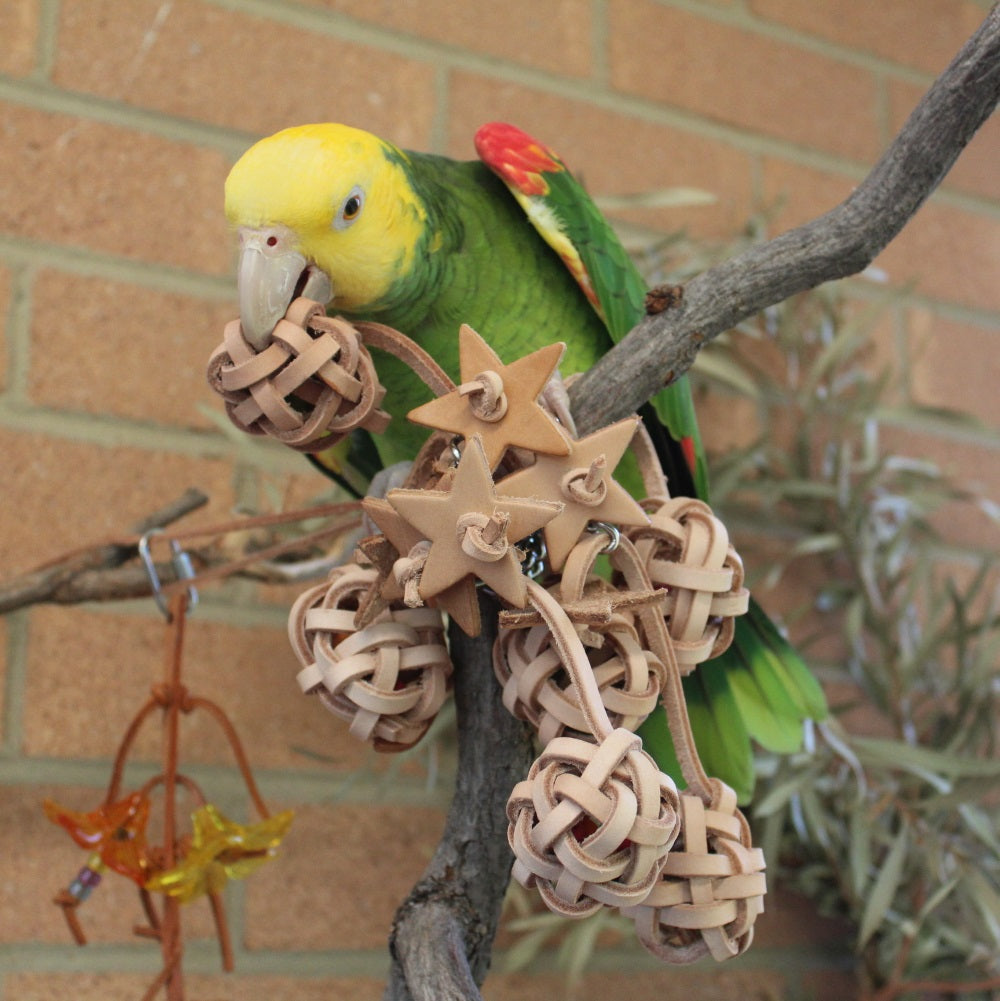 Each leather ball is filled with wooden beads. You can squeeze in some nuts and treat to make more fun.Leather ball is made with 6mm width vegetable tanned leather. Long lasting.