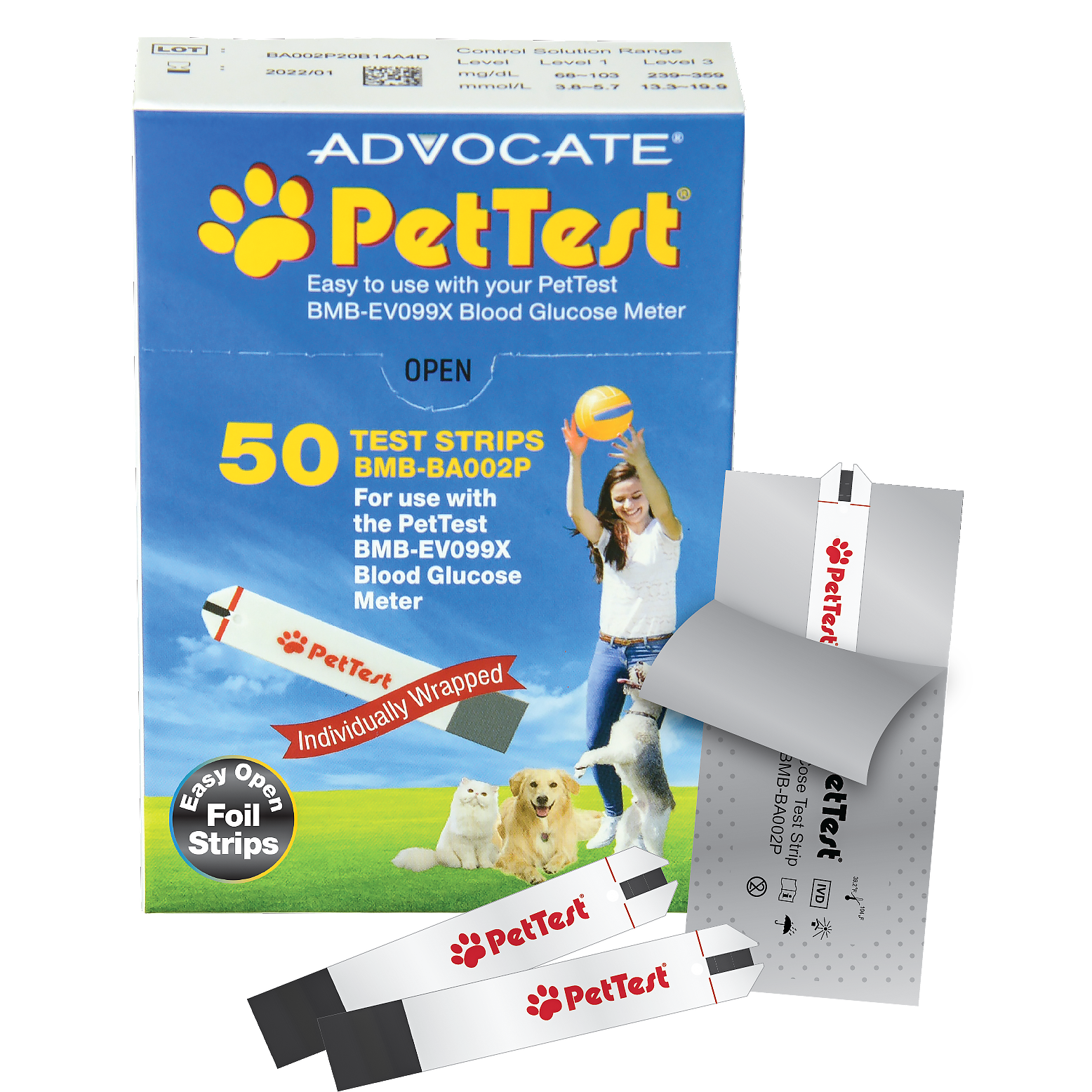 NEW individually foil wrapped PetTest Blood Glucose Test Strips are used for the accurate monitoring of blood glucose testing. Each strip is protected from air and moisture. Thus eliminates expirations based on when vial was opened. Each strip is as fresh as the last!