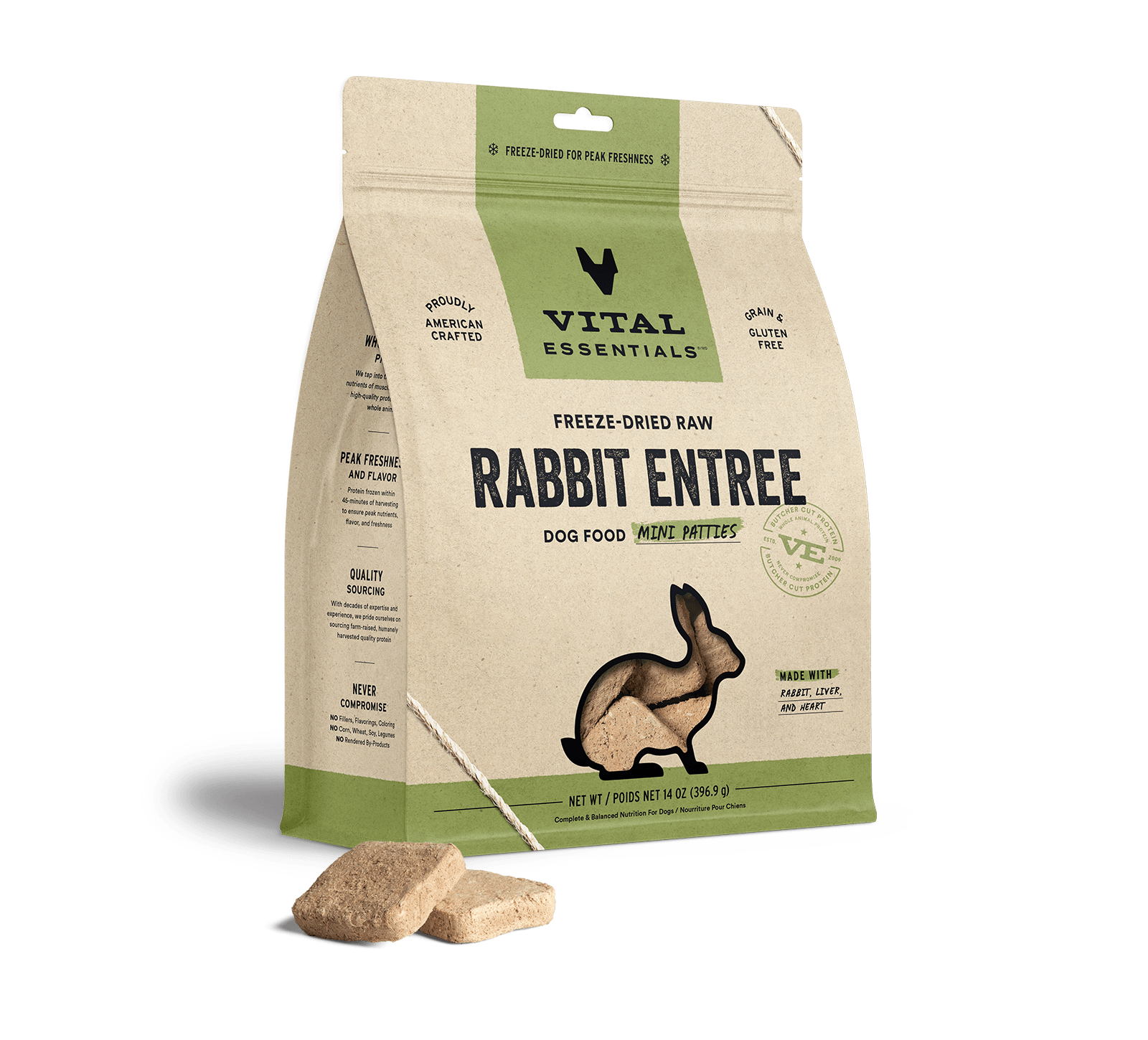 Vital Essentials Rabbit Entree Mini Patties Freeze-Dried Raw Dog Food
