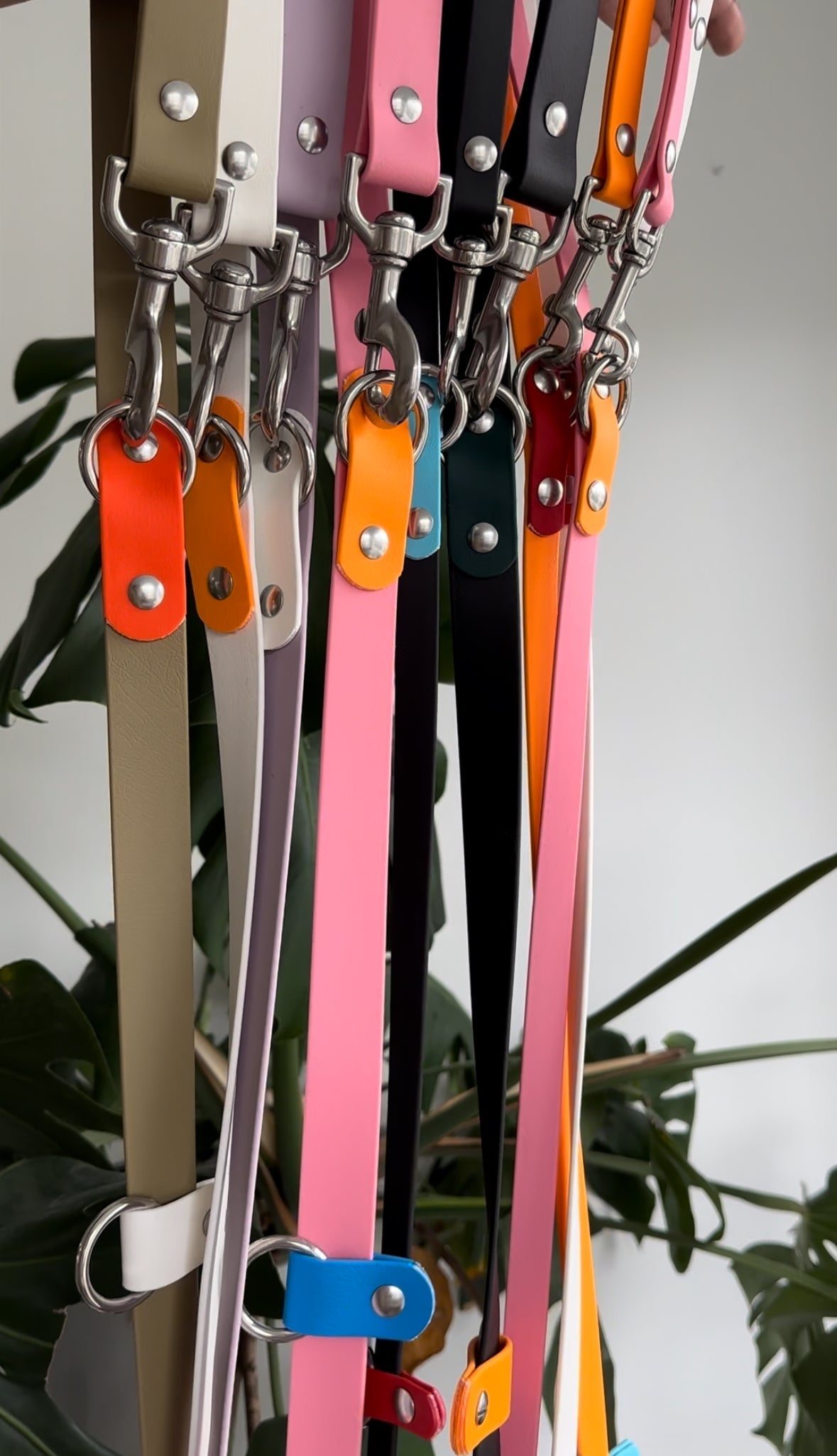 Choose your adventure! Create a custom Any Way lead with the colors of your choice ✨ The Any Way lead consists of a leash with 2 tabs - one is a stationary tab for your handle ring and one is a sliding ring that you can adjust to be hands free.