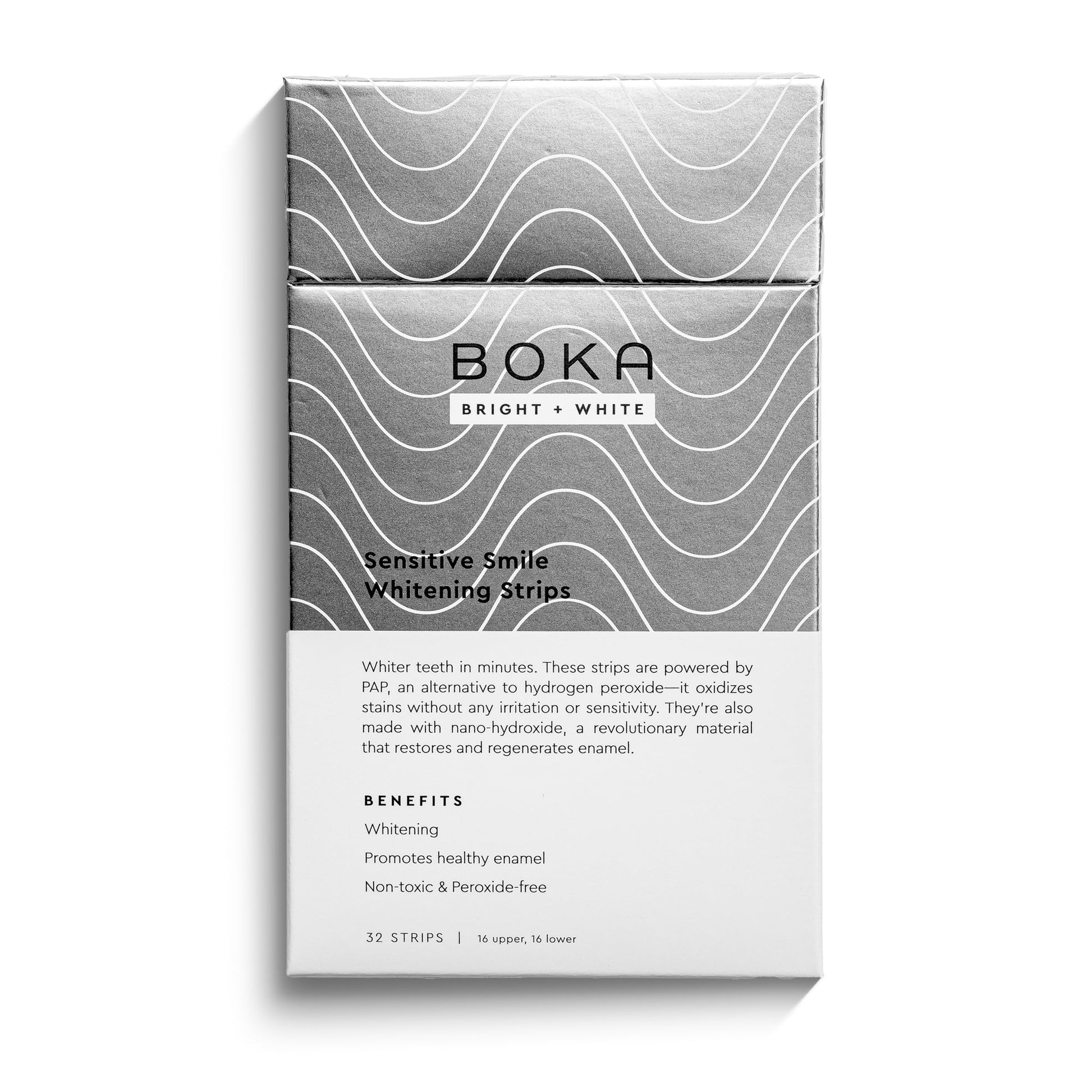 Introducing a breakthrough in teeth whitening: gentle yet effective whitening strips designed for sensitive teeth. In just 30 minutes, experience the transformation to a brighter, dazzling smile without the usual discomfort. These strips are powered by PAP and nano-hydroxyapatite, expertly crafted to eliminate stains while prioritizing your tooth sensitivity. They are peroxide free, pain free and promote healthy tooth enamel all while whitening your teeth without the sensitivity.聽