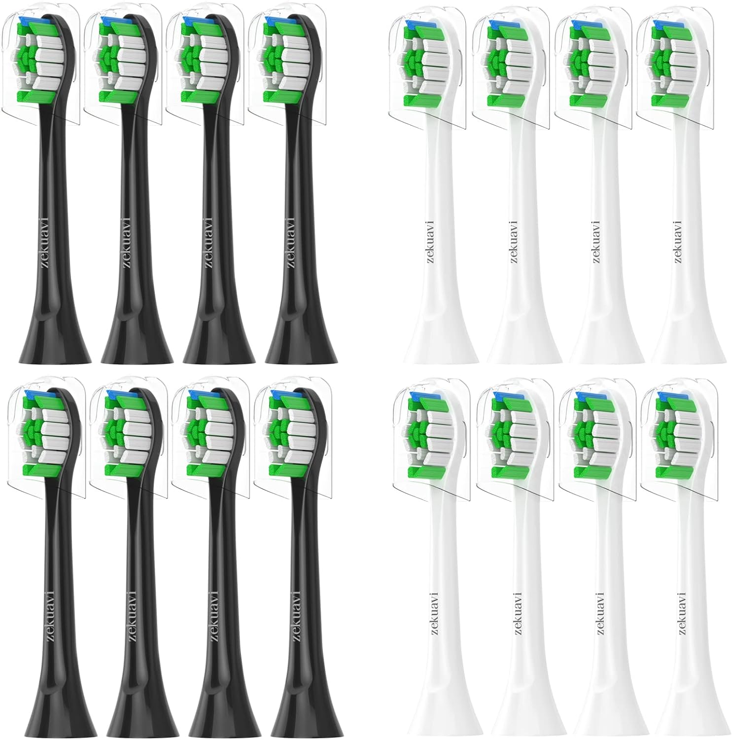 Zekuavi 16Pack Toothbrush Replacement Heads Compatible with Phillips Sonicare Protective Diamond Expert Daily 4100 5100 6100 1100 7500 6500 Electric Toothbrush, 8White8Black